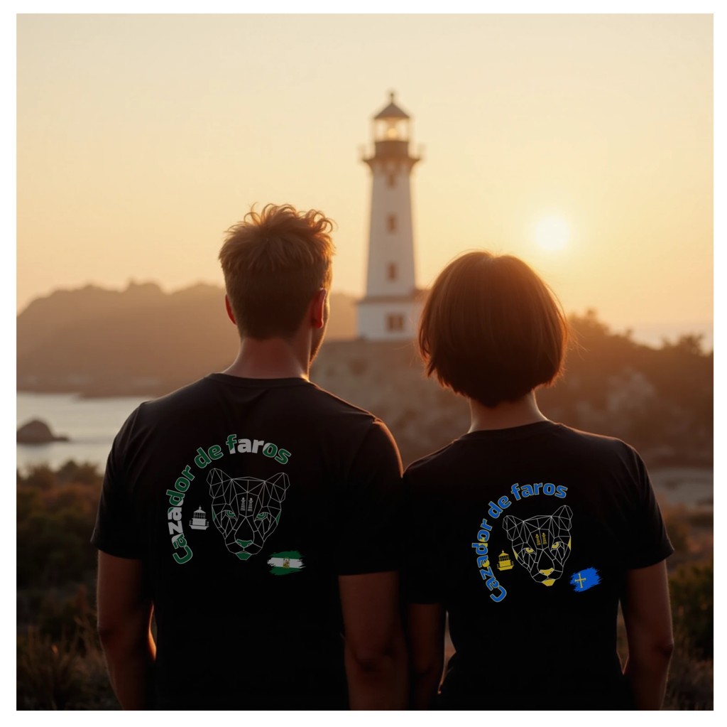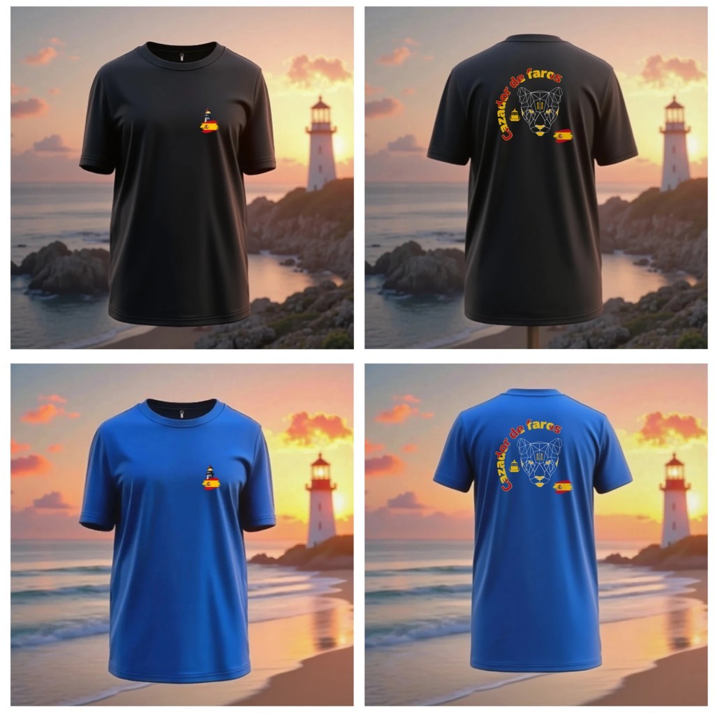 Incorpora tu versión personalizada del logo oficial, "Cazador de Faros" en idioma Español o Galego, y adaptada con tu bandera de España, Galega, Européa o cualquier otra que elijas. Así, cada prenda se convierte en un símbolo único que te identifica dentro de la comunidad… y en cualquier parte del mundo.