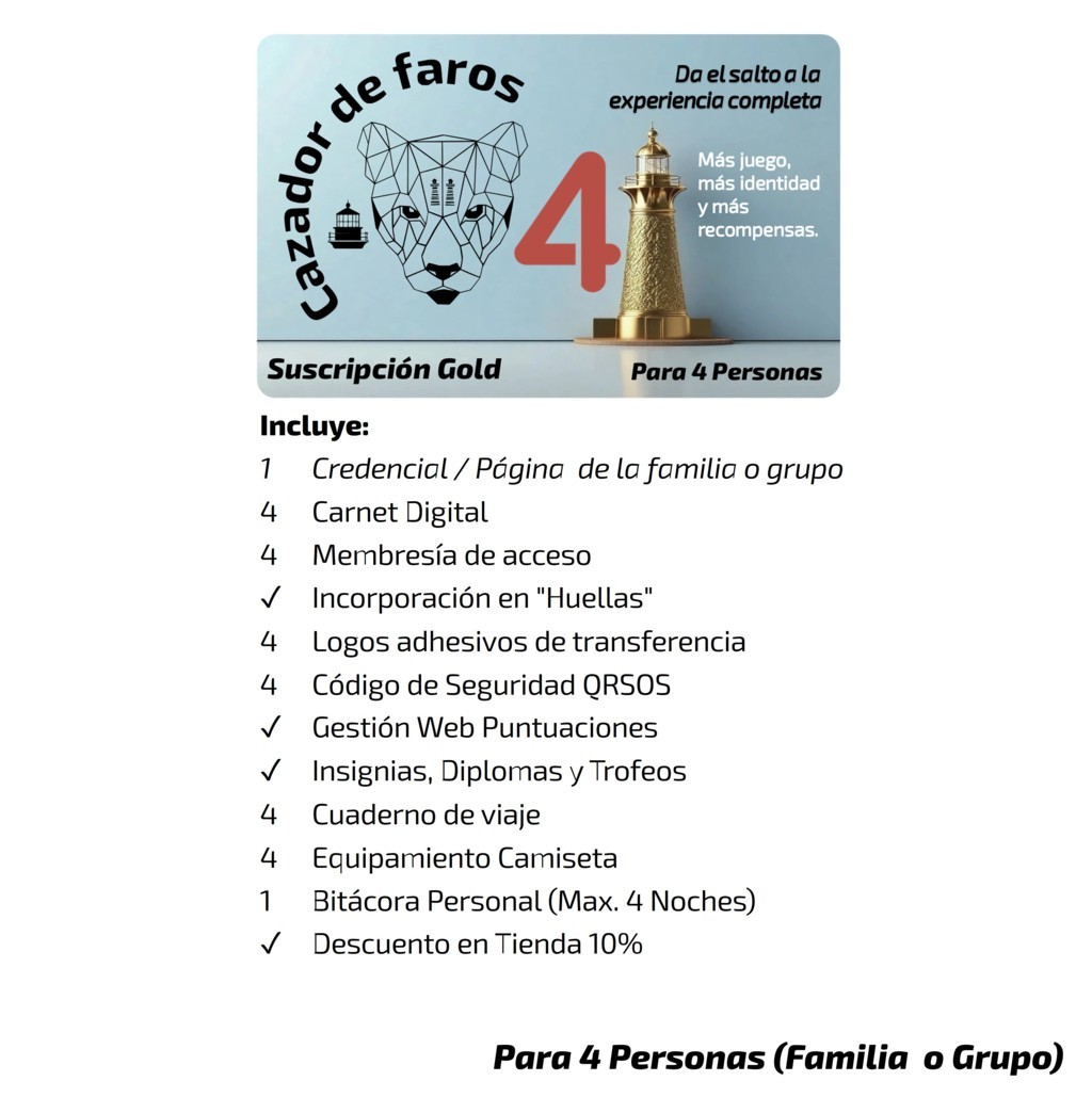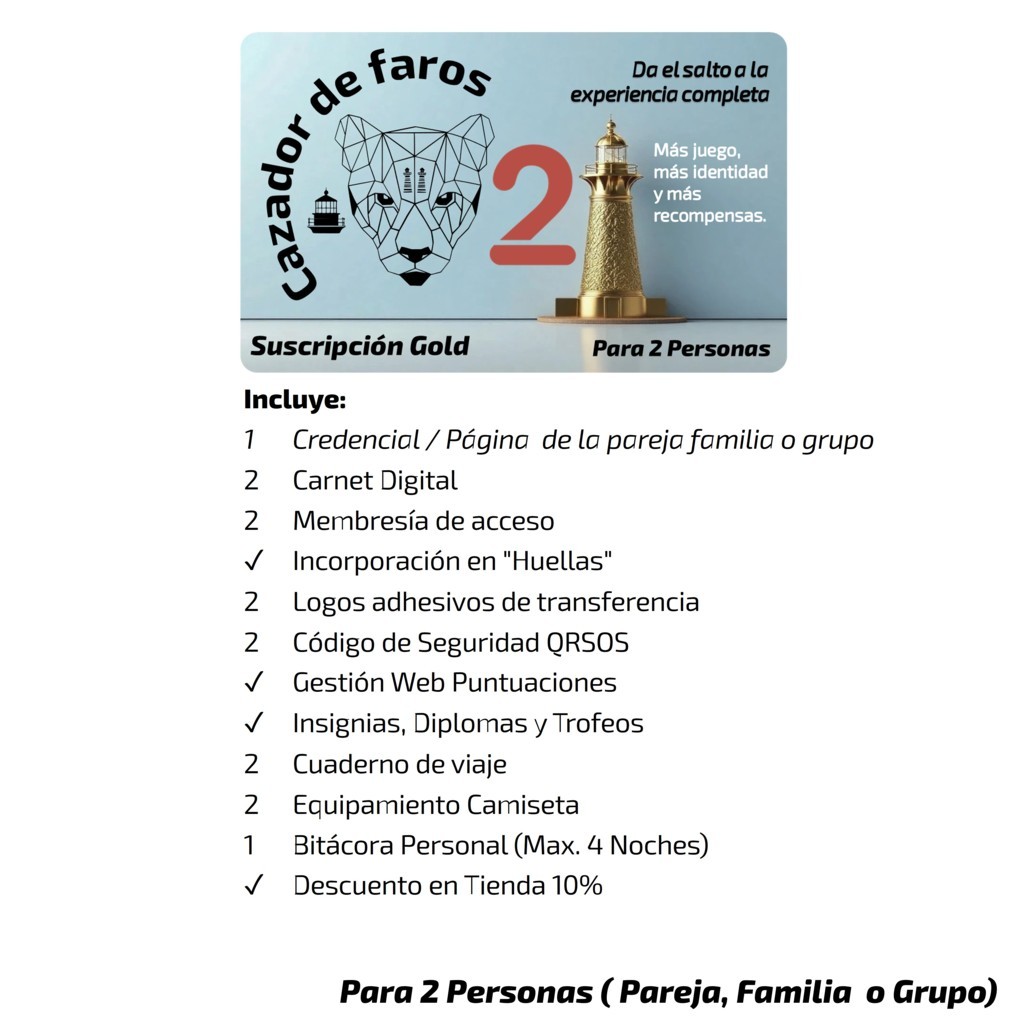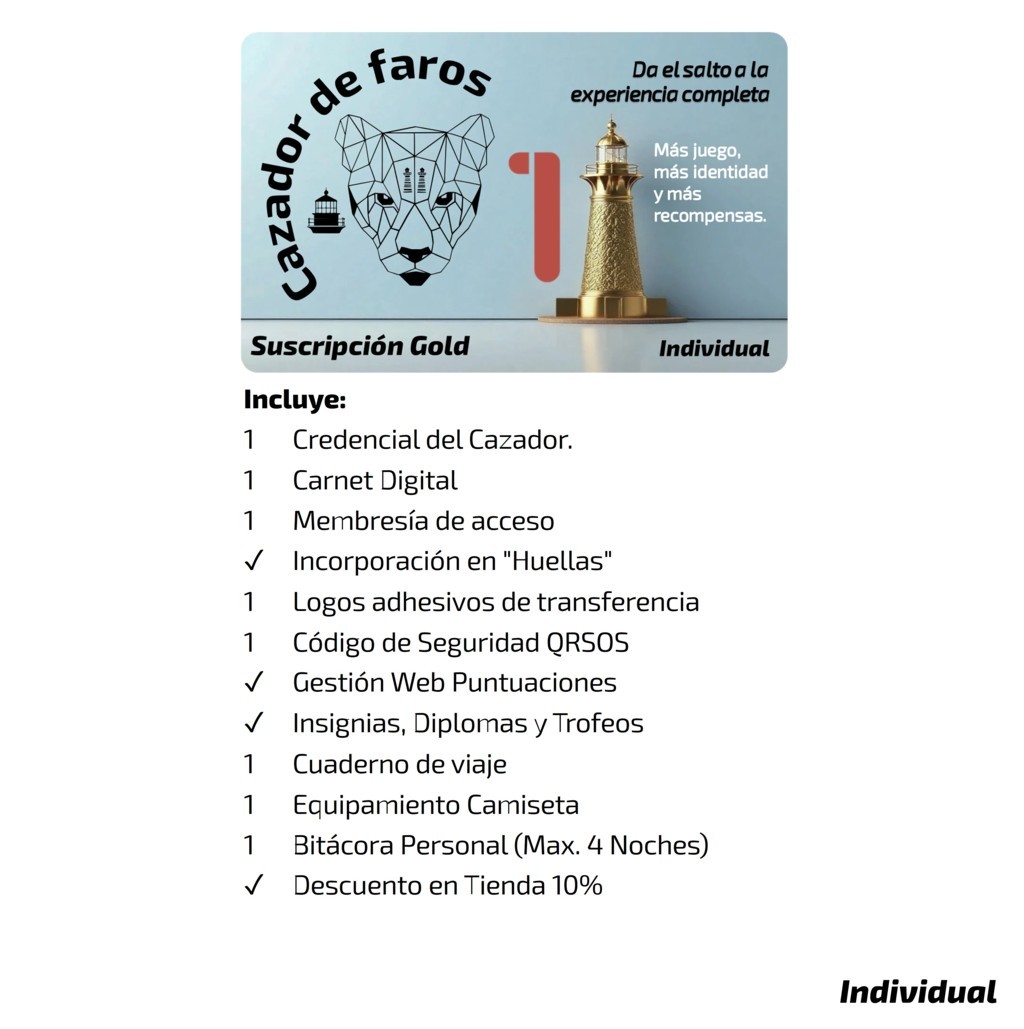 La suscripción Gold incluye todo lo que ofrece Silver y añade la Bitácora, el cuaderno imprescindible para planificar, anotar y recordar cada faro y cada ruta. Además, incorpora la Camiseta Oficial, personalizada según tu identidad dentro del juego.